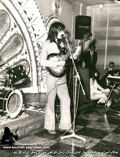 Les moustaches ne doivent pas vous impressionner, Kourosh Yaghmaei est un grand romantique ! Première rock star dans l'Iran pré-révolutionnaire (avant 1979), Kourosh mêla les sons psychédéliques aux mélodies persanes traditionnelles. Interdit par la censure des religieux arrivés au pouvoir, il ne put chanter pendant dix-sept ans.